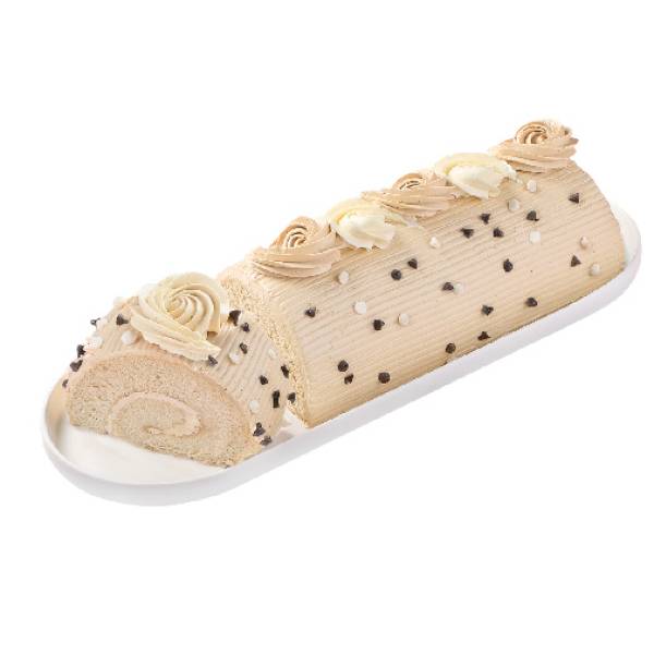 Moist mocha sponge cake iced in mocha buttercreme, sprinkled with twin chocolate chips.