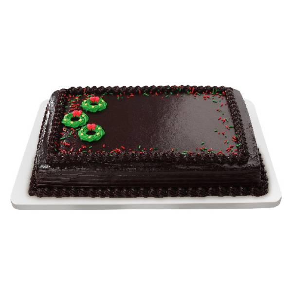 Bring home the cheer with our Holiday Classic Choco Greeting Cake. Moist chiffon layers are filled and iced with chocolate frosting, adorned with a festive wreath and showered with red-and-green vermicelli.