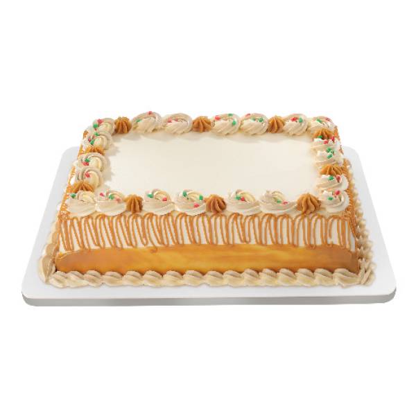 Celebrate with our Holiday Luscious Caramel Cake - two layers of soft chiffon, richly covered with marbled caramel icing and drizzled with yummy caramel sauce. Each cake is crowned with a festive red-and-green oval gumpaste for an instant holiday cheer.