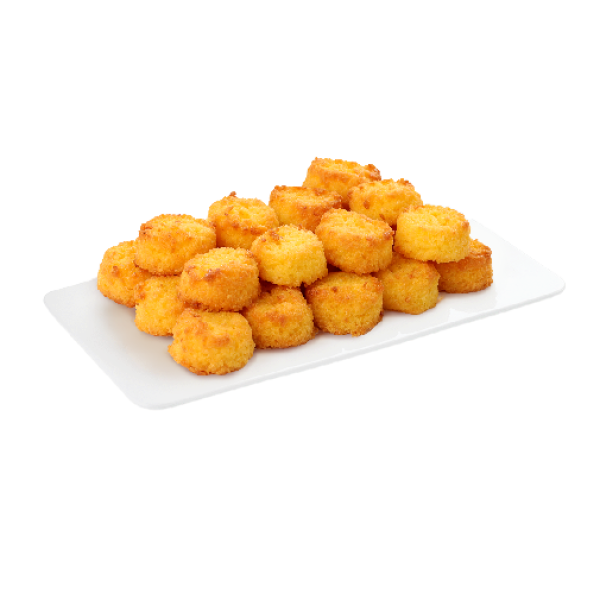 Small round butter flavor cookie made from dessicated coconut, sugar and egg white.