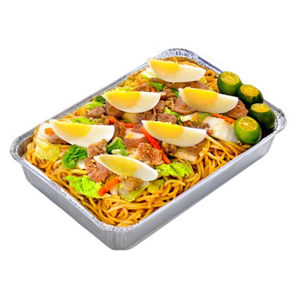 Egg noodles cooked in a savory sauce of pork, liver, carrots,baguio pechay, and celery Topped with Lumpiang Shanghai and boiled egg. Served with calamansi on the side